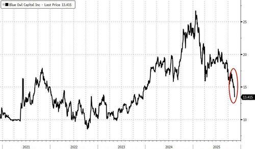 周一另类资产管理公司Blue Owl Capital股价下跌近6%,创下2023年12月以来的最低水平。